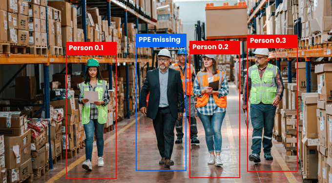 Vision AI systems can seamlessly identify any kind of suspicious behaviour in real time. Within an industrial setting, it sends real-time alerts to authorities and supervisors in case of any absence of safety gear.